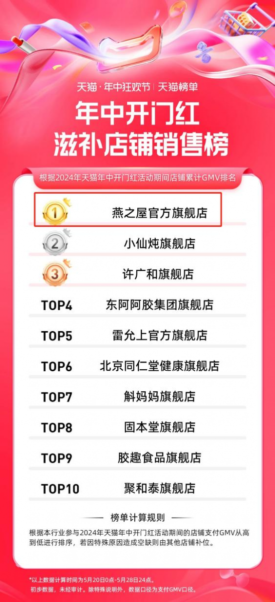 隨著618大幕拉開,第一波戰(zhàn)報火熱出爐。據(jù)阿里健康發(fā)布的2024年天貓年中開門紅健康行業(yè)成績單顯示,燕之屋官方旗艦店榮登滋補店鋪銷售榜第一、健康行業(yè)店鋪銷售榜第二,展現(xiàn)了燕之屋在品牌年輕化戰(zhàn)略中的深度思考和實踐能力。