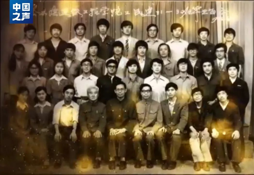 圖:沈世釗在哈工大和學(xué)生們的畢業(yè)合影